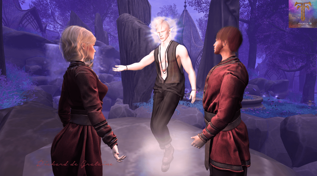 smiling as he used to do – It’s magic, remember right? I’m here to help you find your child, but to do that, I need you two to part, at least momentarily. You both have paths to follow, different paths, and mind you that everyone at Fantasy Faire counts on Cynthia and Richard … it is the magic of love that wins over evil! –
