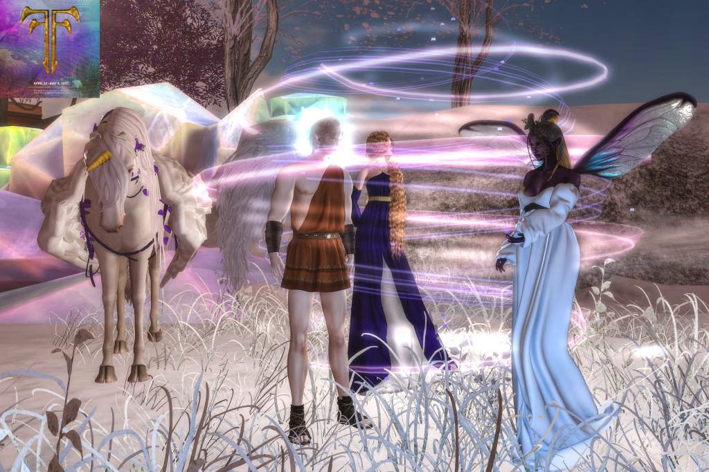 And that’s how I follow him, anxious with my heart swollen with emotion, a beautiful Fairy appears in front of me. I bow to her greeting – My name is Joy, and I am Queen of the Fairies, your fame Cyn precedes you, and I am here to help you. – A flap of wings and the most beautiful creature reveals itself in front of us. It is such a bright and shiny unicorn. -Get on her back, her name is Serenity will take you to your beloved! And now go, fly! – my smile is like that of a little girl – Hold on tight to my mane! – Says Serenity, and with a quick flick of my wings I find myself flying through Fantasy Faire! The night breeze caresses my face.