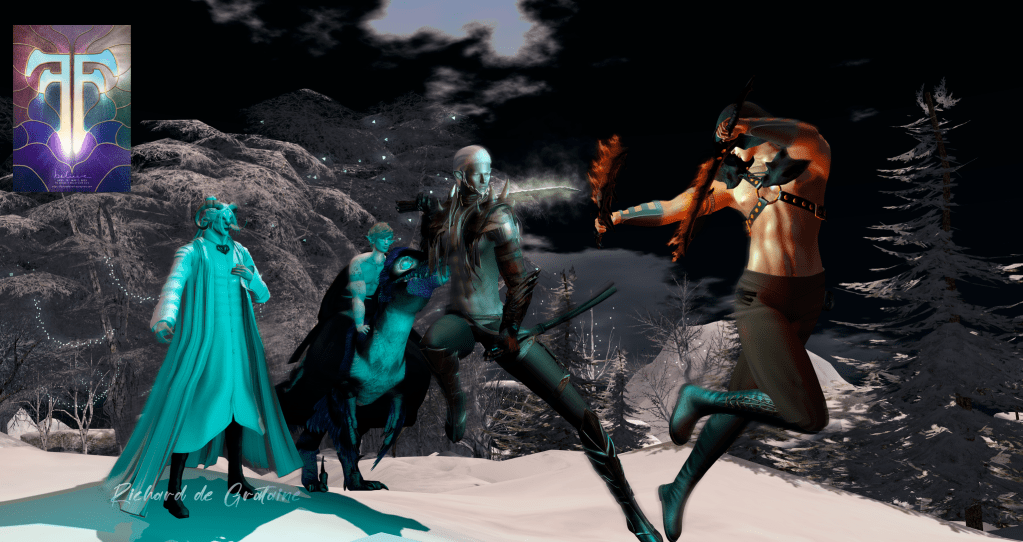 Fantasy Fair 2023 Chapter 8/2 Good triumphs! Evening comes to Fantasy Faire. Richard feels strongly the presence of his beloved Cynthia. Despite the perhaps inopportune hour, he goes to Vrad the Great Sage, who does not seem at all surprised to see Richard. -Mead?- he asks him with a smile, and without waiting for his answer, he pours the amber drink into the goblet.-Cynthia…-continues the Great Sage – she is here -replied, paying no attention to the astonishment on Richard’s face.-Your wife , well , she needs rest and we have to go get Rimion .- Richard takes a gulp from the goblet and nods, his suspicions hadn’t given him a break, and he felt the danger just like Cynthia, just like all creatures in Fantasy Faire. He puts the goblet down slowly on the shelf -What happened to my son? -He asks staring into space -Cynthia killed Pamela the dark elf while she was trying to subjugate her. With her were Ryanna the fairy warrior and the elf Lórien son of the God of dreams. Your wife is fine but while Rimion was returning from the Academy he was kidnapped by the Dark Elf Pel , after planning revenge for the death of his sister – Richard looks at the Great Sage then asks …-Thia?- Vrad shakes his head – She dissolved, remember? She was nothing more than a projection of Pamela’s evil mind … but she will be reborn strong, beautiful and with a pure soul – Richard nods, biting his lower lip slightly the Vrad continues – are you ready for the final battle?- Richard backs away for a moment-Let’s go yes but first I would like to see my Cynthia for a moment more, the immense skies of Fantasy Faire know how much I missed her. – Vrad invites him to enter a dimly lit room, in a sofa Richard sees the silhouette of her bride, the temptation to approach her to lift her head and place a kiss on it is immense. One kiss? Oh no… he would shower her with kisses yet he heads back towards the great hall. -Let’s go Sir Vrad, let’s go free Rimion! – The land of ice is desolate, Richard feels his body slightly numb from the cold that grips him. In the dim light covered by dark clouds before him Pel the dark elf . -your son is with me I will kill him but first I have to take your life!- Rimion is stunned crouched right behind Pel, who for a moment is distracted by Vrad who has also arrived together with Dino, a magical creature from Fantasy Faire the which crouches allowing Rimion to ride him. -I’ll take you to safety, let’s go to your mother, you don’t know how anxious she is to see you – Rimion is still weak, he nods at Dino’s utterance and as he leaves he turns his head, witnessing a no-holds-barred fight between Pel the elf dark and his father Richard. A nod from Vrad and Dino will walk away taking the young Rimion with him. The fight between Richard and Pel is so fast and fluid that it almost feels like a dance. Endurance, physical strength and cold blood. With one well-aimed blow, Richard shatters the Dark Elf’s evil magic, annihilating him. Tired but with a new awareness Richard returns home…Cynthia the woman he has always loved,she is his home.